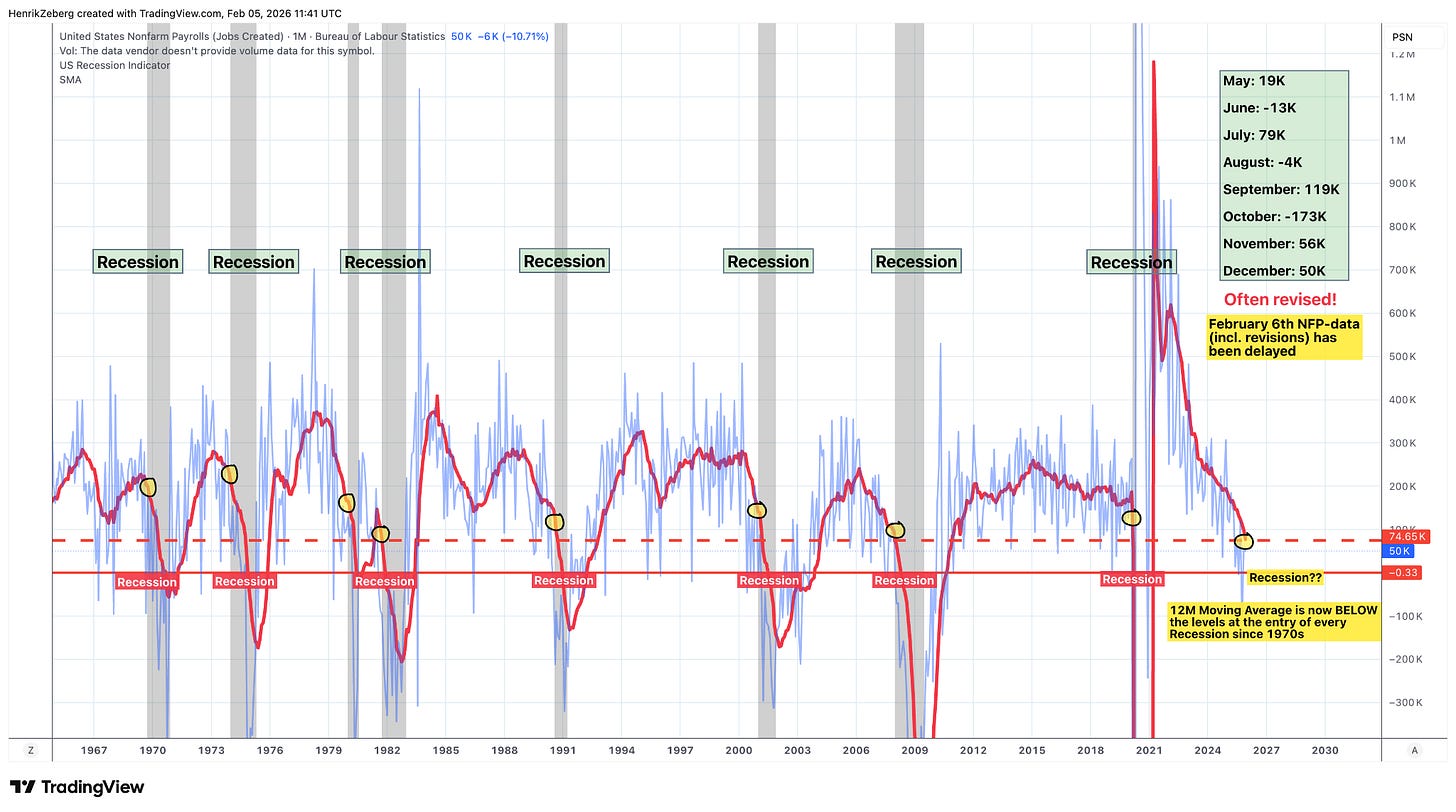 But no cycle can outrun the business fundamentals indefinitely. Beneath the surface, the economy has been showing signs of late-cycle fatigue. The post-2020 stimulus surge created a “sugar high” of growth that is now fading. Key economic indicators are rolling over. For instance, the labor market – often the last pillar to crack – has markedly cooled. Job creation has slowed from a sprint to a crawl in recent quarters, and several monthly payroll reports even came in near zero or negative. Such sluggish employment growth is highly unusual outside of recessions. In fact, the 12-month average of U.S. nonfarm payroll gains is now at levels that historically preceded recessions, indicating that the expansion’s engine is stalling out.